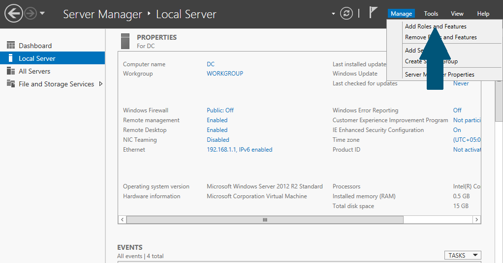 Step 1: Open server manager dashboard from task bar and click Add Roles and Features