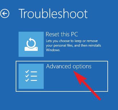 Now choose the Advanced options from the Troubleshoot screen as highlighted in the above image.
